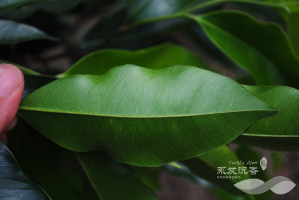 沉香树叶子反面 ,国内较常见的白木香品种